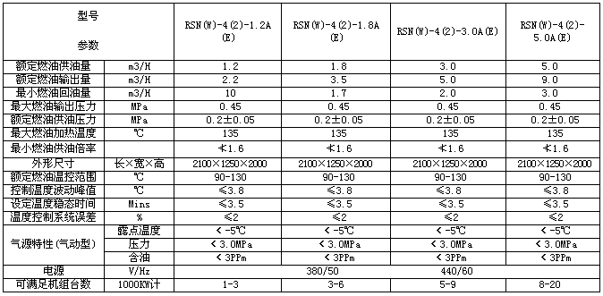 | 供油模块主要工艺技术参数 |